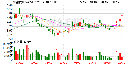 二级市集上,2月9日、10日,ST雪发接连斩获了两个涨停板。纵容2月10日收盘,ST雪发收于涨停价4.81元/股,总市值26.17亿元。