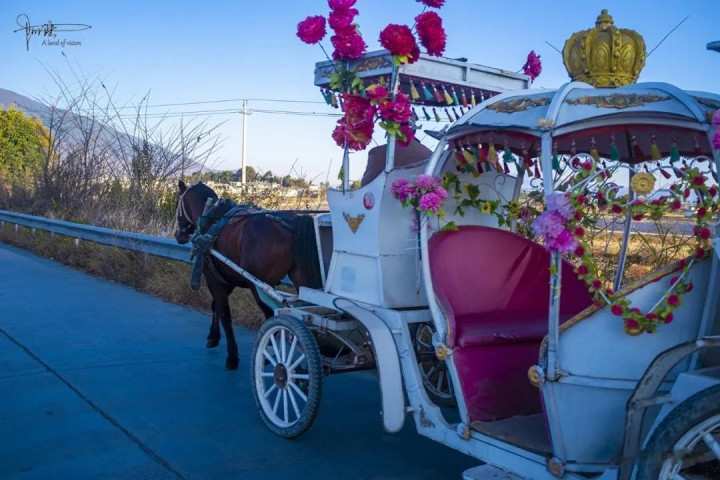 在路上稍作停留,却有马车俄顷从童话寰宇里穿逾越来似的,从我身边渐渐走过,臆想是快到“上班工夫”了吧,而他们前进的标的,当然即是不远方的喜洲古镇啦。