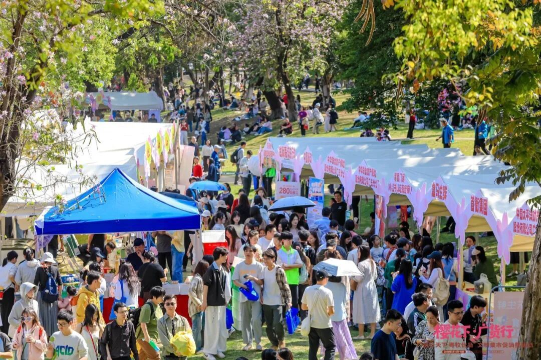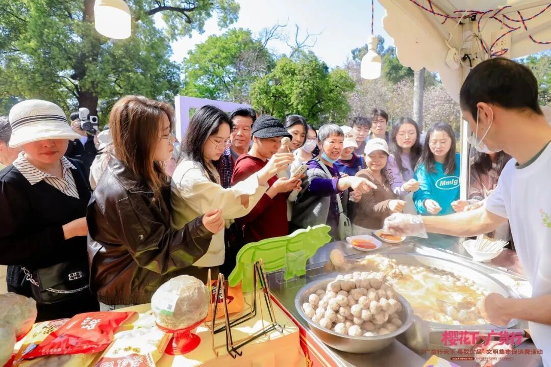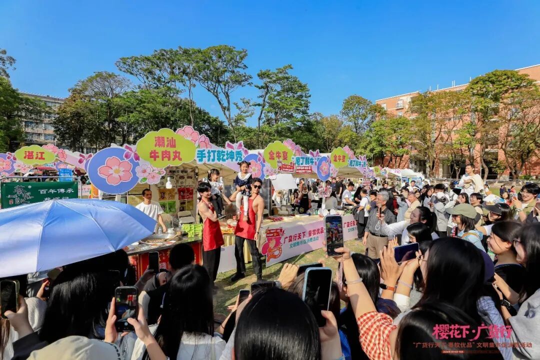 春花烂漫之下,一场充满岭南人烟气的讲究集市正在校园里吵杂张开。从线下东说念主气到线上传播,“樱花下·广货行”成为广州这个春天的一抹亮色。