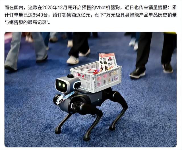 2026年头,维他能源在3个月内得回了两轮统统3亿元投资、其Vbot超能机器狗累计卖出6540台,预订销售额近亿元,往日三年方针销量定在百万台。
