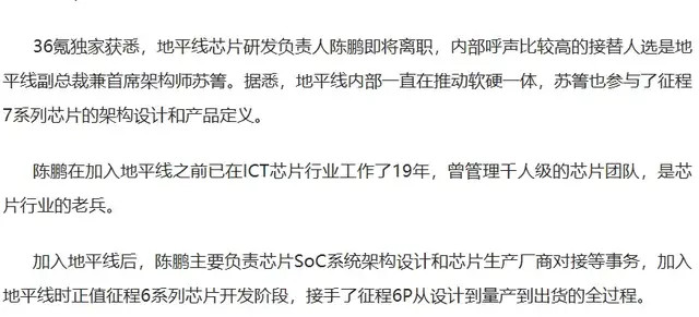 这种担忧并非杞东谈主忧天,而是仍是驱动变成了试验:2026年3月,36氪报谈称,地平线芯片研发肃肃东谈主陈鹏行将下野,甚而有外传称,陈鹏将与原COO联手创业。