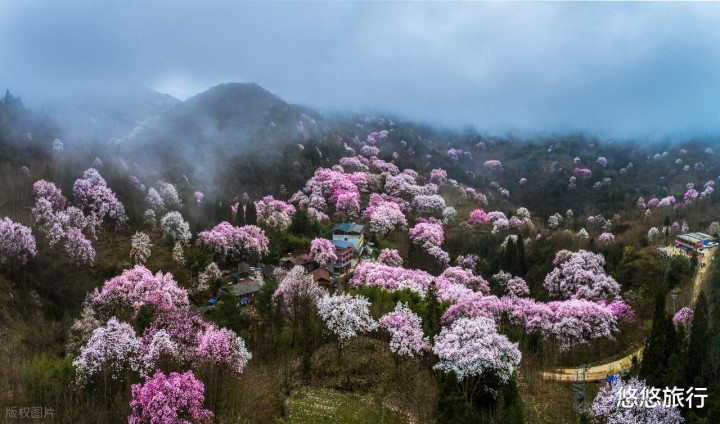 在江油与北川交壤处的药王谷与吴家后山,这里是的春天,被辛夷花染成粉色。4月初-中旬是最好不雅赏期。