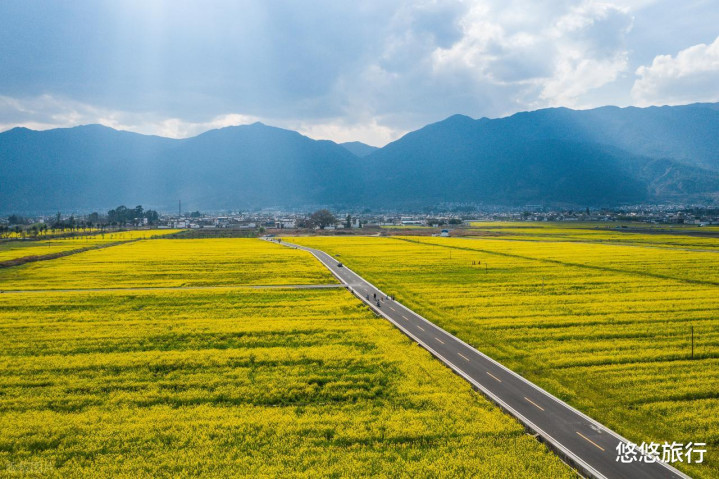 3-4月是大理的淡季,苍山眼下,洱海湖畔,庞大的白族村庄,原野油菜花搭配三坊一照壁的白族院落,是大理春日标记性的田园表象。