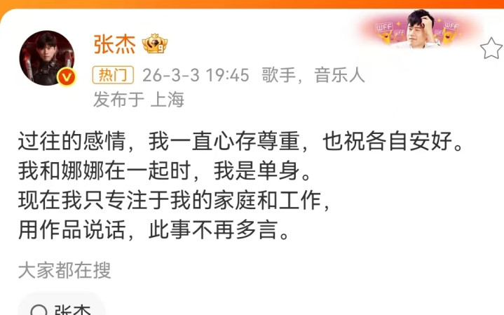 张杰的声明精真金不怕火明了,异常明确的说我方莫得劈叉过。