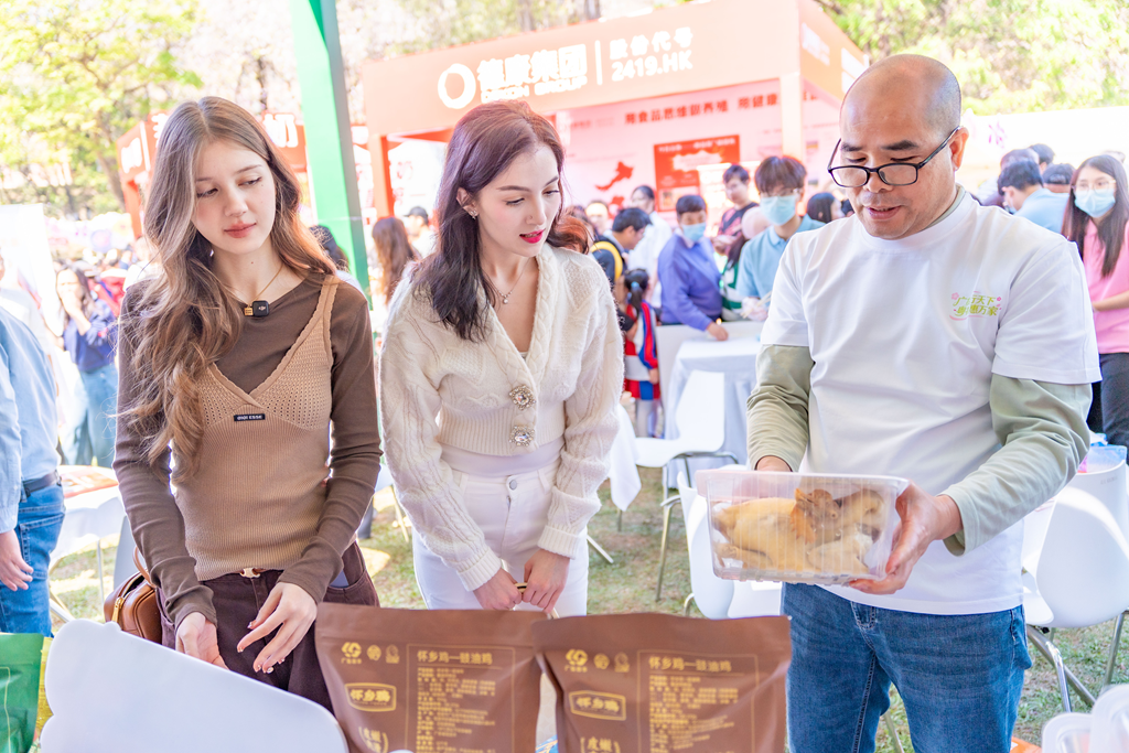 市集之上,春和景明,潮汕手打牛肉丸、广式腊味等粤味好菜陈设,市民赏景品食、笑语盈盈,企业洽谈结缘、春光如海,尽显岭南的求实、包容与奋进。