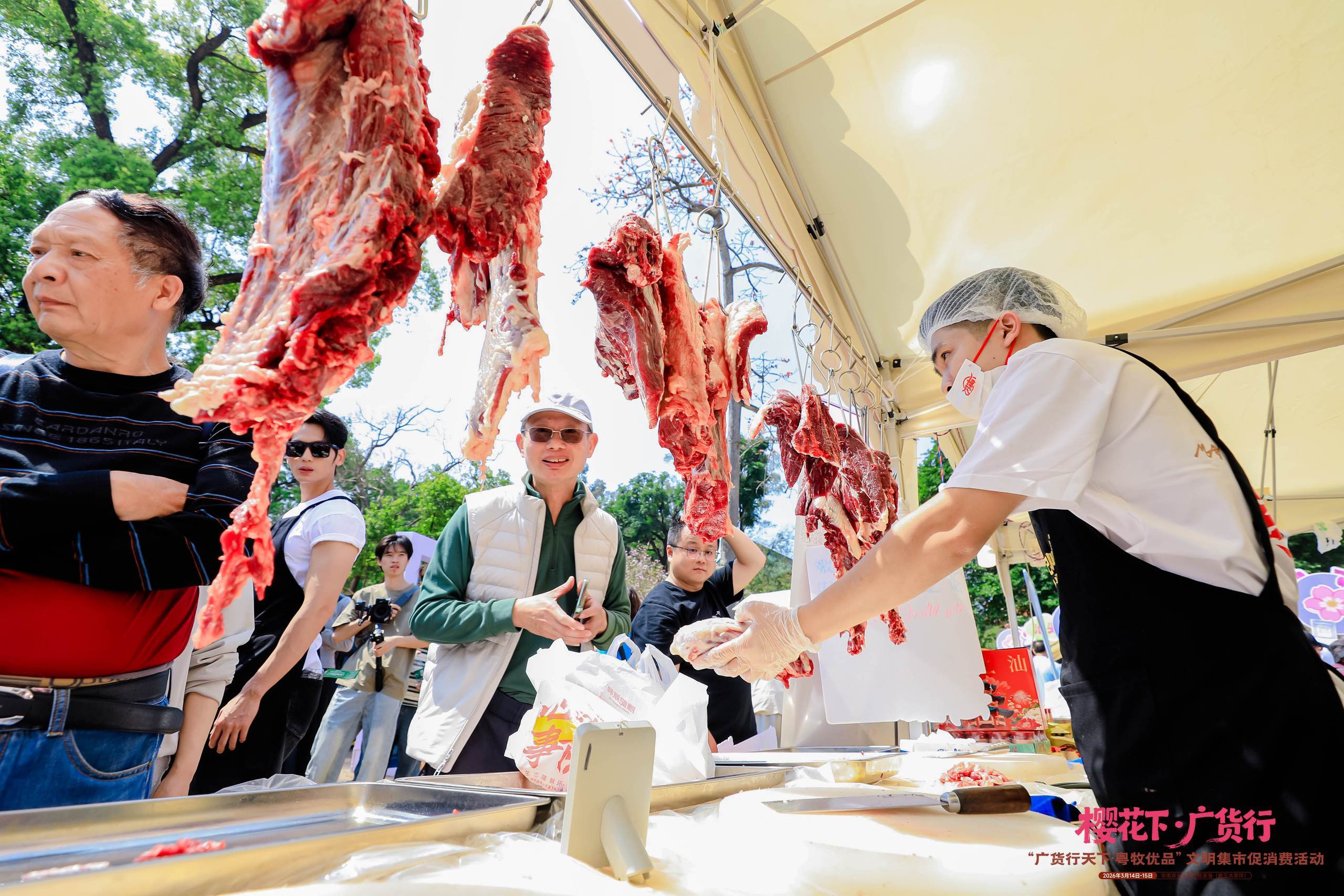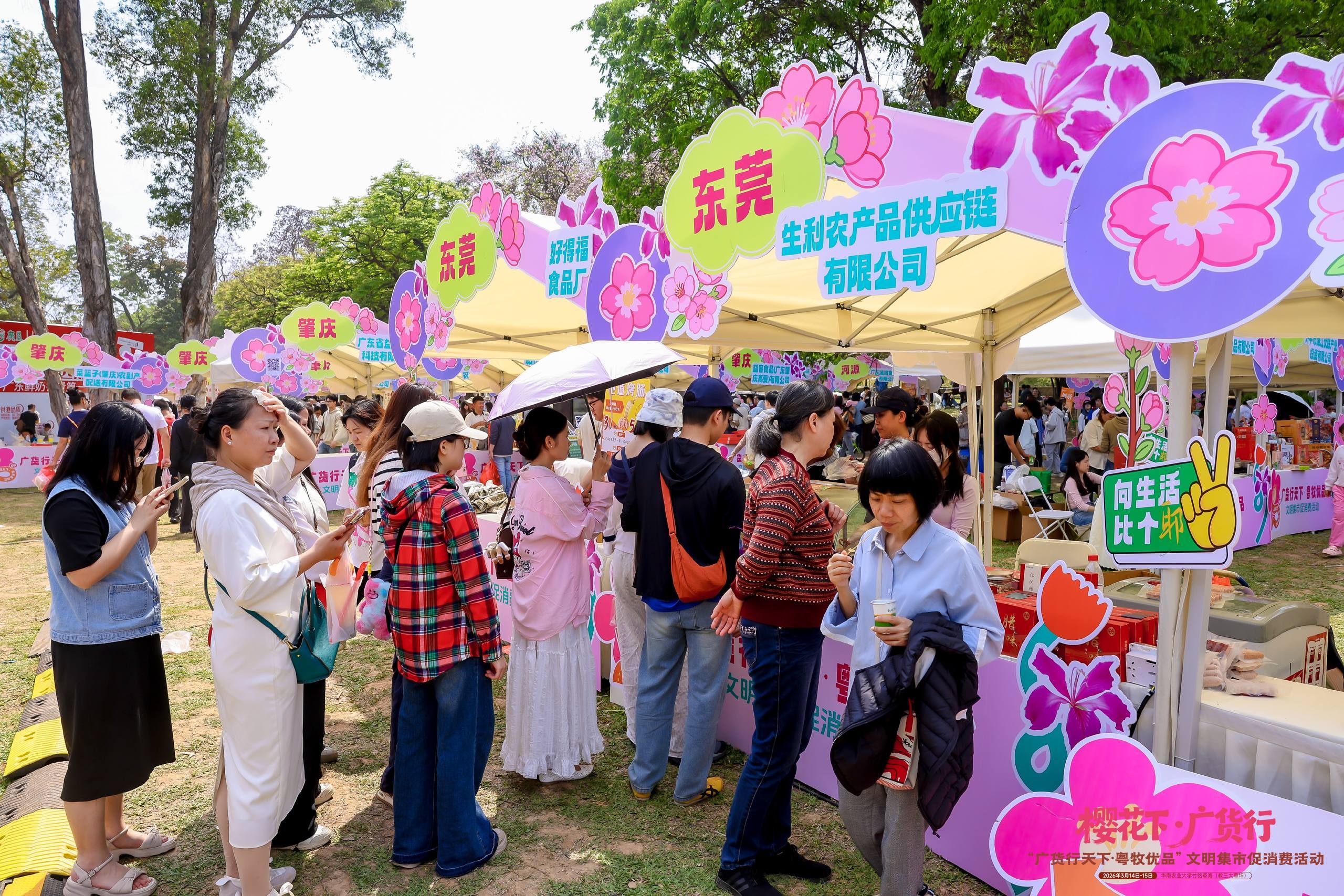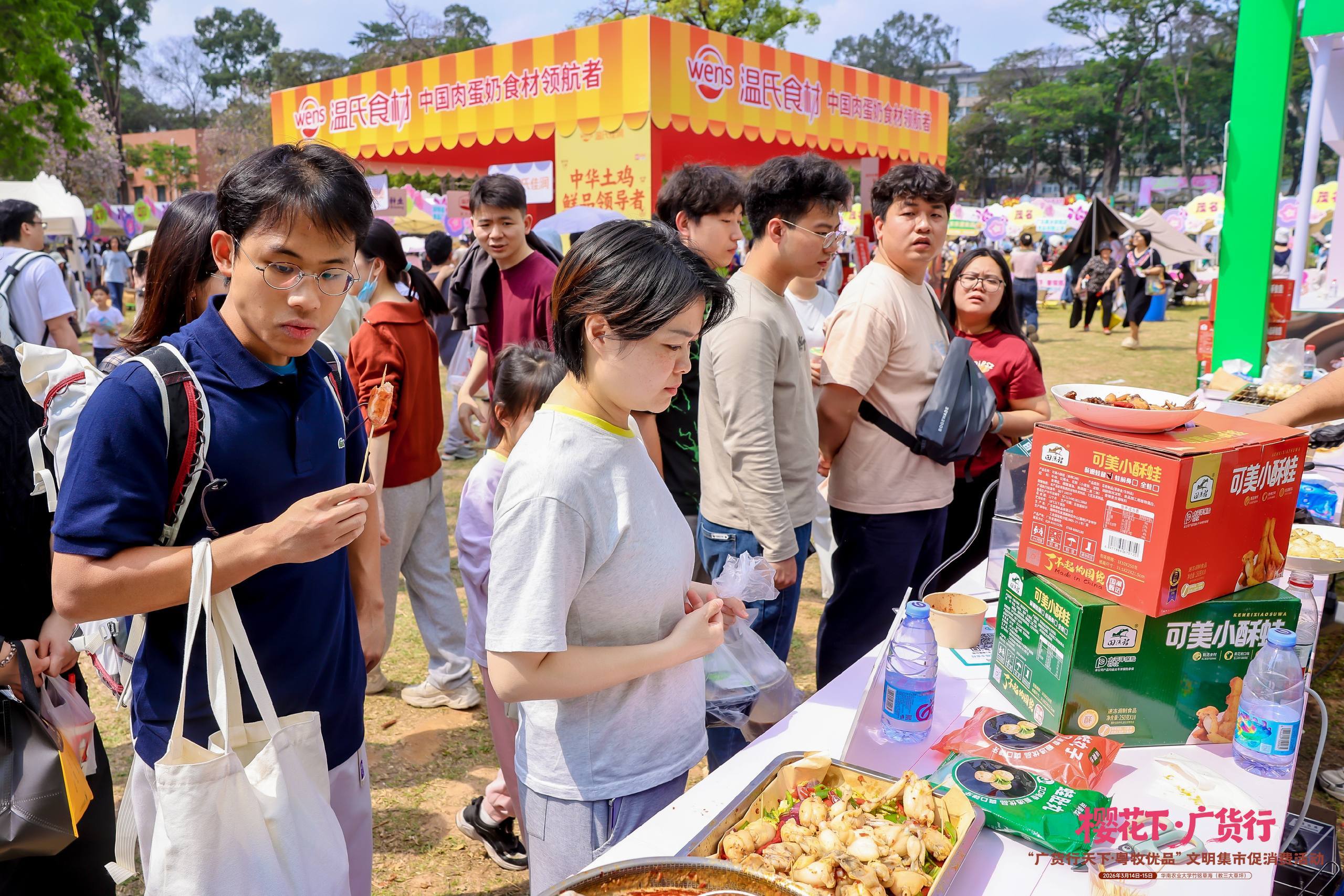 “从校门口就运行堵车”“奔着大湾鸡和十二花神来的”“手打牛肉丸太顶了”……3月14日至15日,华南农业大学花海之中,“广货行天地·粤牧优品”时髦集市促耗尽活动东谈主气爆棚、吵杂超卓;花香与烟火气会通,国风与新潮碰撞,活动首日上昼就招引8万市民涌来,粤牧优品再度告捷出圈。